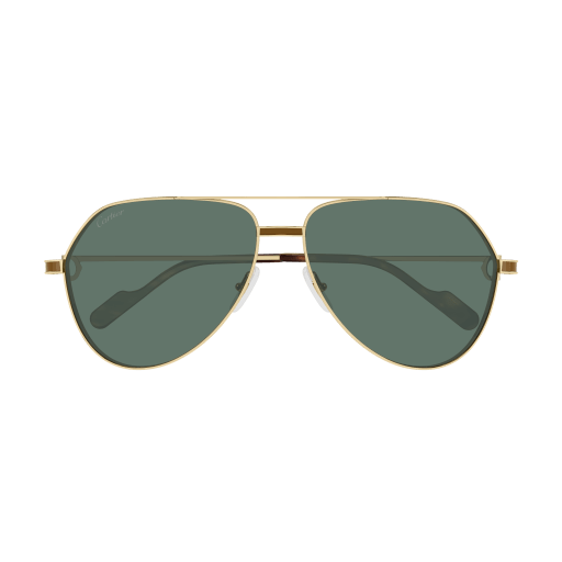 Masculine pilot shape combined with elegant and sophisticated light temples. New lacquering details enriching the front and the hinges always characterized by the Godron and C Décor detail as aesthetical and functional element of the hinge. Prèmiere de Cartier dedicated Zeiss colorful lenses with light gold flash effect and red anti-reflective coating. Cartier logo plaque on temple tips and Double C Décor signature on the nose pads.